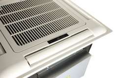 Фанкойл кассетного типа крепится над подвесным потолком, скрывая основную часть конструкции. Декоративная решётка корпуса прекрасно вписываются в любой интерьер помещений. Современный дизайн, удобство обслуживания и возможность установки в ограниченном пространстве делают данный фанкойл лучшим выбором как для коммерческих, так и для жилых помещений.